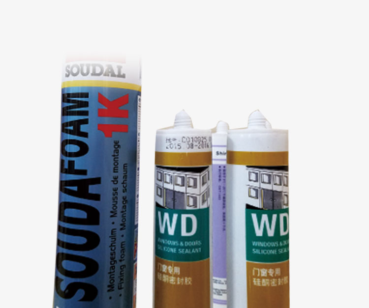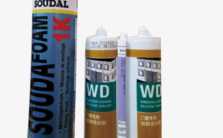 聚氨酯发泡胶采用世界知名企业比利时速的奥SOUDAL品牌胶,密封中性硅酮胶采用德国道康宁DowCornmg和德国瓦克化学WACKER品牌胶。